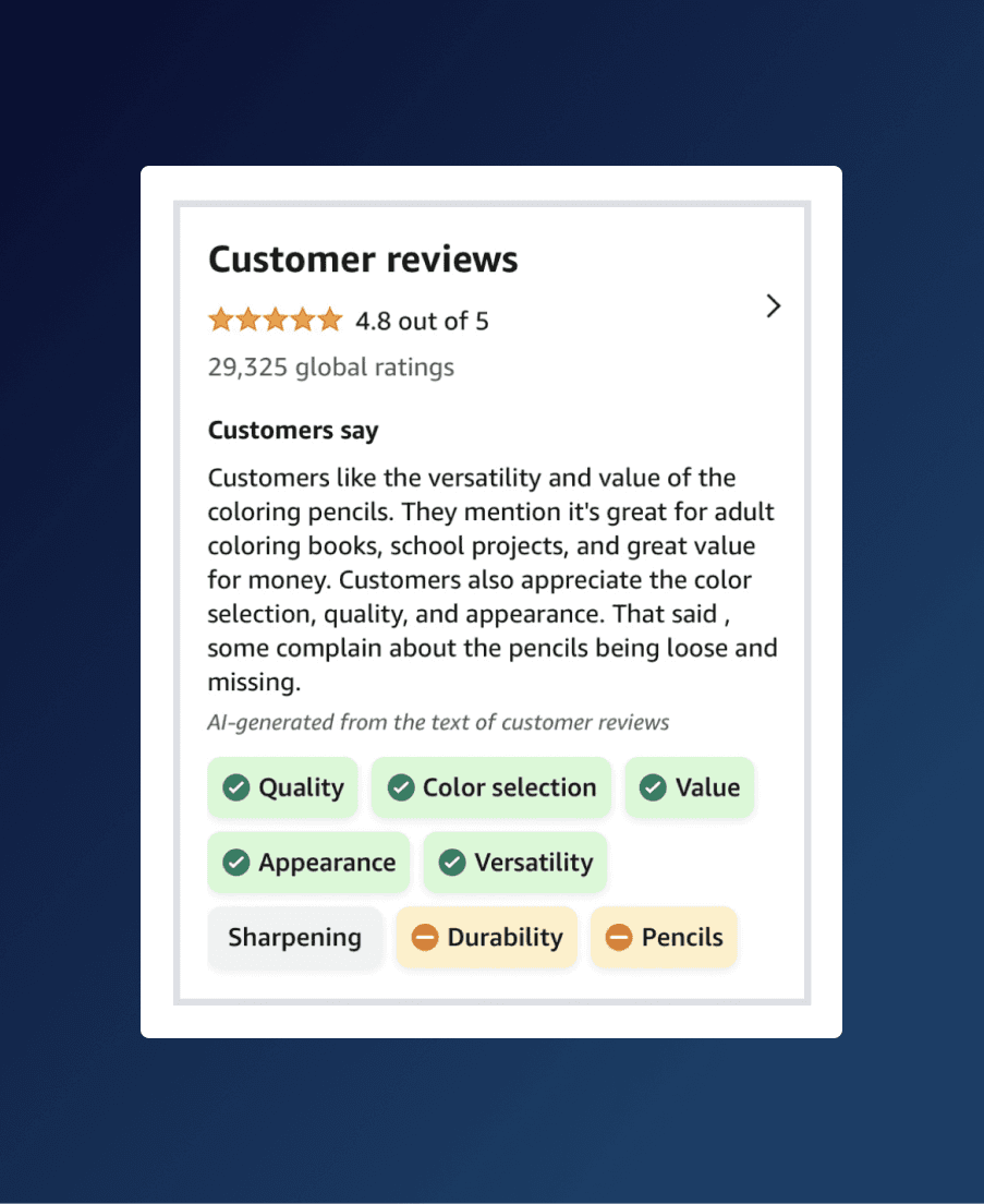 The AI model automatically reads through all the reviews and pull out the most important points. It looks for key themes and common keywords, then creates a short, easy-to-read summary that captures the overall sentiment. Plus, the merchants can keep updating the summaries every 30 days as new reviews come in, so the information is always fresh and relevant.