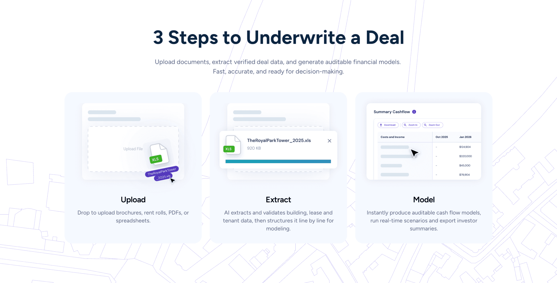 The site was restructured into a clear, single-page narrative that moves from a strong value proposition to deeper product detail, starting with the hero and key benefits, then introducing core products like Acquisition Modelling and Asset & Portfolio Management as central pillars, followed by supporting features, problem–solution framing, and credibility through client logos, with clear calls to action throughout.