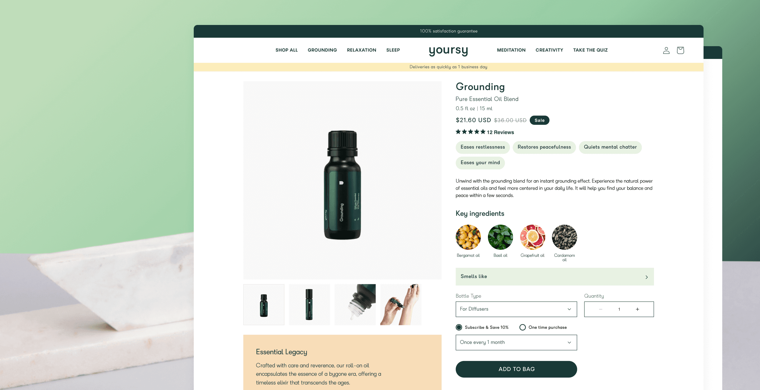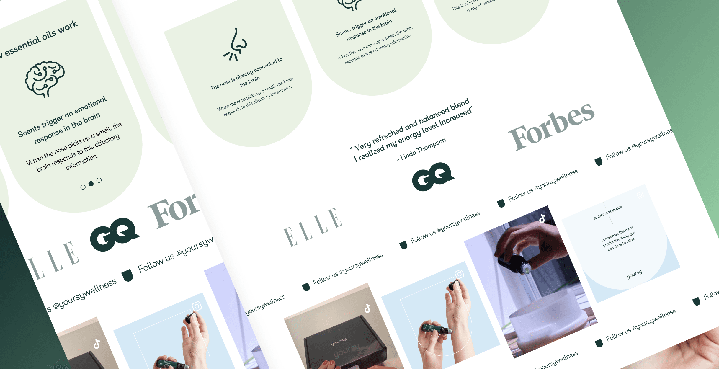 The main problem Yoursy was facing was low conversion rates, with difficulties convincing potential customers to make a purchase. The brand was also struggling with slow website performance, poor product page structure, and an overall lack of dynamic and engaging elements on the homepage to effectively communicate the benefits of aromatherapy and the unique selling points.